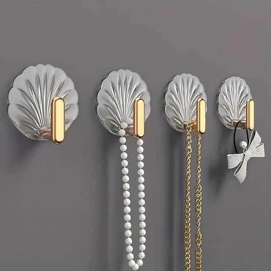 סט 4 יחידות ווי קיר דקורטיביים בצורת צדפה