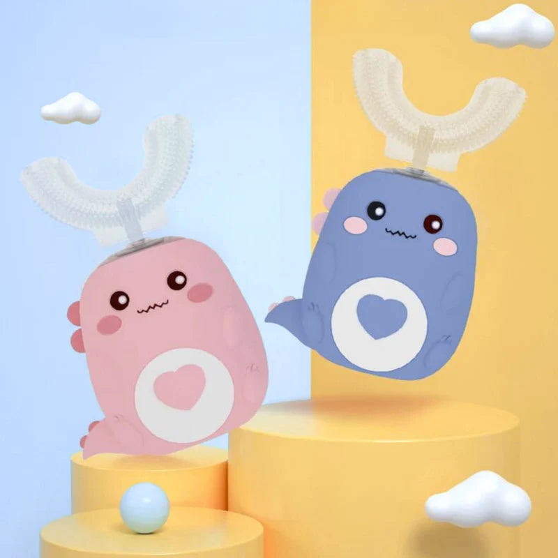 שמים מעט משחת שיניים על ראש ה־U.הילד מכניס לפה ולוחץ על כפתור ההפעלה.